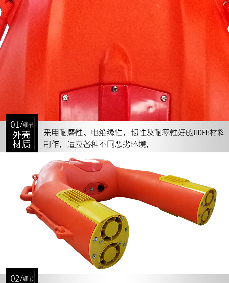 智能遙控救生器,外殼采用耐磨性、電絕緣性、韌性及耐寒性好的HDPE材料制作,適應(yīng)各種不同惡劣環(huán)境,目前搭配的動力系統(tǒng)是安全性很好的鋰電池集成系統(tǒng),使用安全,內(nèi)置9軸陀螺儀,可以識別姿態(tài)信息,自動切換左右,海浪沖翻后也能恢復(fù)姿態(tài)并保持航線運行。
