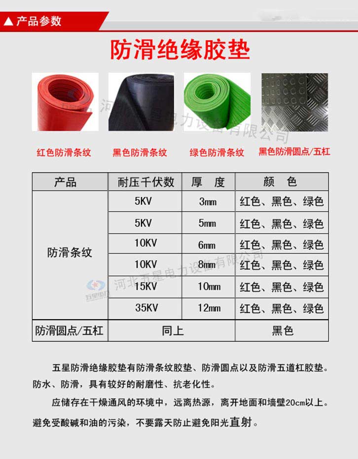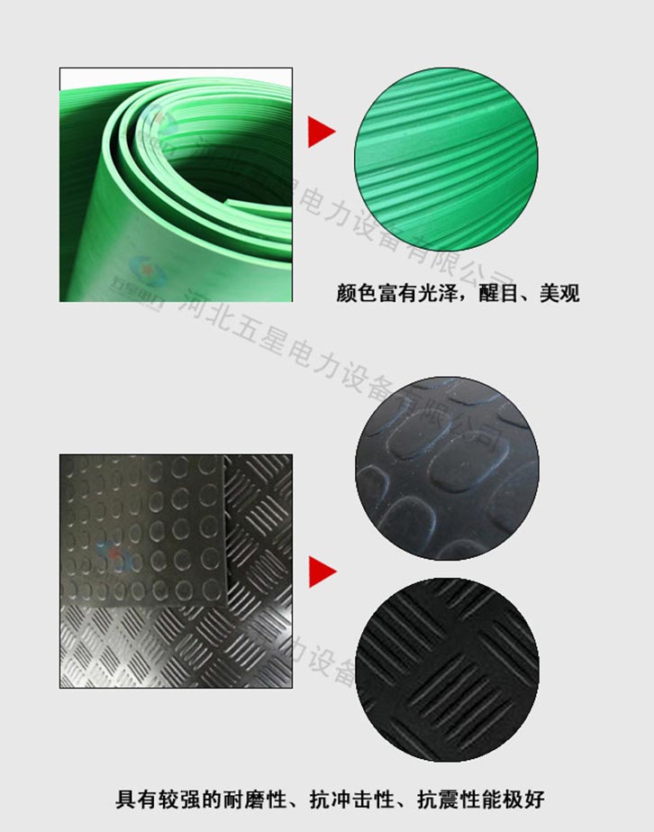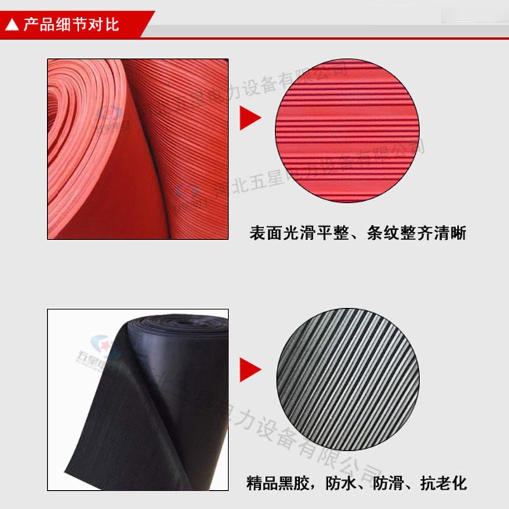 防滑絕緣膠墊產(chǎn)品分為防滑圓點、防滑條紋。 不含雜質(zhì):原生橡膠材質(zhì),不含次生膠,切面不會有粉末, 柔韌性好:具有優(yōu)良的絕緣性能,彈性強(qiáng),拉伸強(qiáng)度大 光澤度高:原生橡膠材質(zhì),無任何塑料成分,表面光澤度高 無氣泡:五星電力絕緣膠墊,表面無氣泡,無裂痕